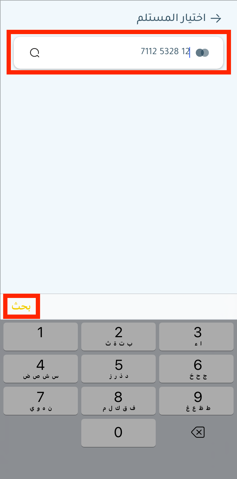 انسخ رقم حسابنا أدناه والصقه في هذا الحقل، ثم اضغط على “بحث“
